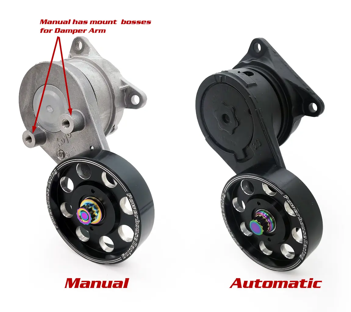 Be careful when selecting your bolt style. It is often the case that someone could have done an engine swap or tensioner arm swap if you weren't the first owner of your car. Verify the tensioner arm in your car. Just because you have a manual or automatic transmission doesn't mean that is the tensioner arm you have on your motor. These are the arms as they come equipped on manual or automatic transmission equipped cars.